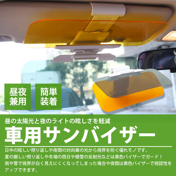 クリップ式 サンバイザー カーバイザー DAY & NIGHT バイザー UVカット 【日除け 遮光 サングラス 自動車 小物 日中 夜間 デイ & ナイト バイザー 簡単装着 2ni1】