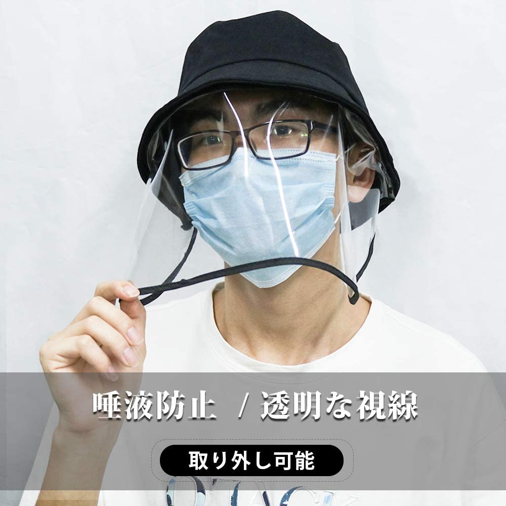 漁師帽 サンバイザー 花粉・飛沫 使い方2way 折りたたみ フェイスカバー 取り外し可能 日除け帽子 保護帽 UVカット 防風 防塵 花粉症対策 ウイルス対策 つば広ハット 男女兼用 ブラック【送料無料】